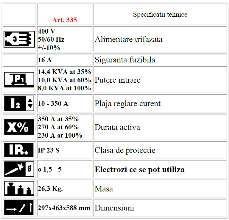 Optional : cabluri de sudare 50mm2 diferite lungimi in limita a 25m, masca de sudare, alte accesorii.