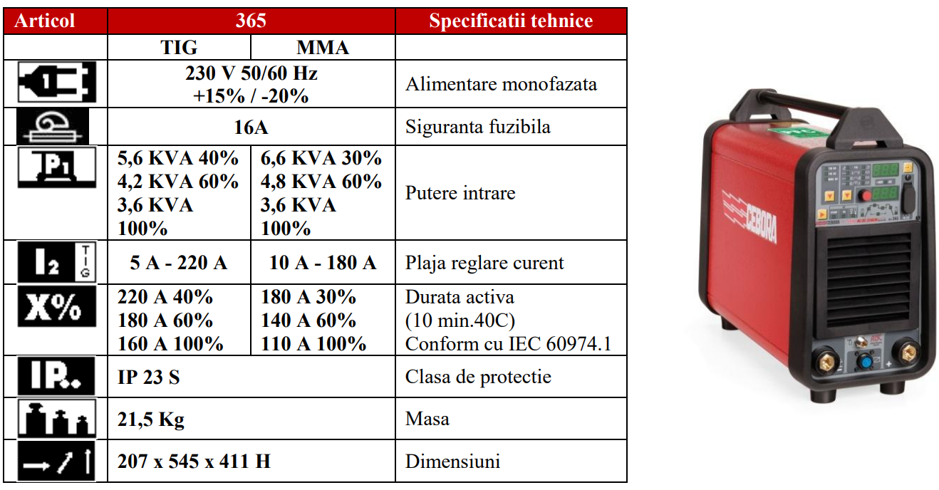 TIG cat si MMA cu electrozi inveliti. Poate functiona cu arc pulsat in operatiile care necesita transfer termic minim.