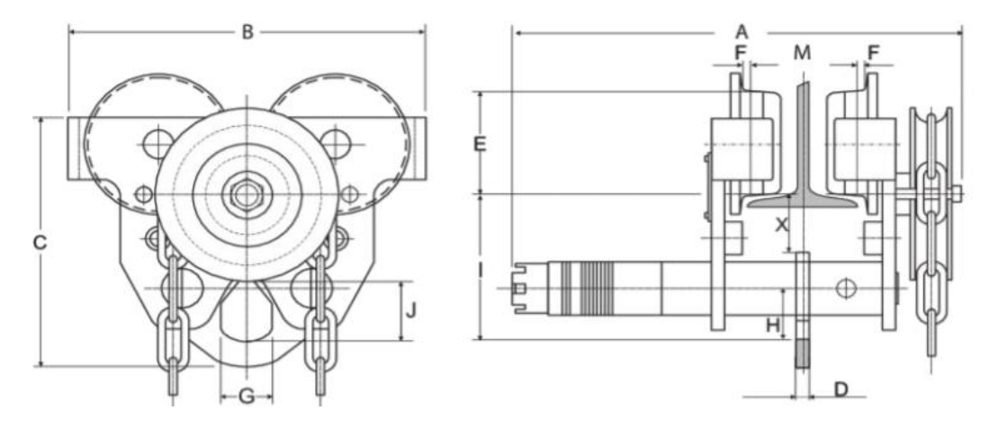 Caruciorul poate fi folosit pentru orice profil al grinzii (cu talpa dreapta sau inclinata), in combinatie
