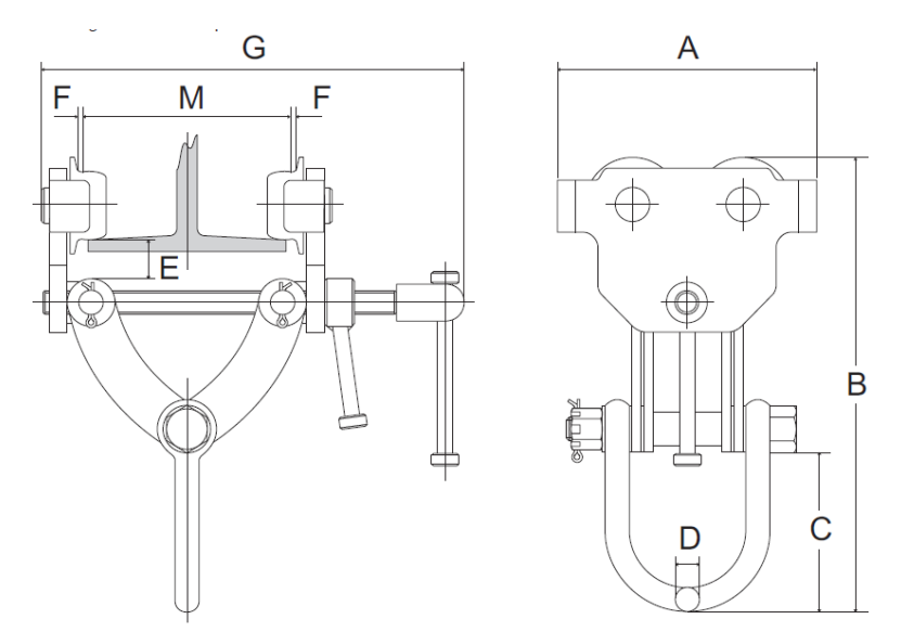 | Tip | Capacitate (kg) | Grinda (mm) | Raza minima (mm) | Masa (kg) | Articol |