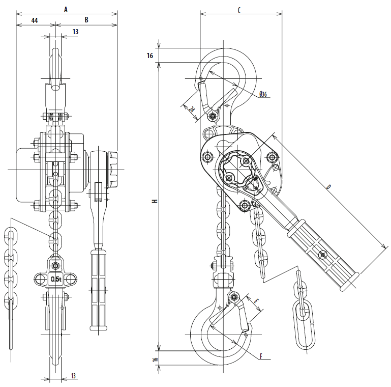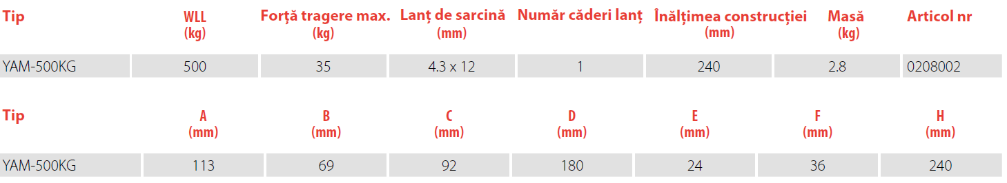 Mini palanul manual cu maneta REMA YAM este compact și are o masă proprie mică. Efortul
